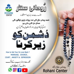 اگر آپ یا آپ کا کوئی جاننے والا دشمن کی وجہ سے پریشانی میں ہے تو روحانی سنٹر سے رابطہ کریں۔ ان شاء اللہ، اللہ کی مدد سے دشمن کمزور ہو گا اور آپ کو سکون اور حفاظت ملے گی۔